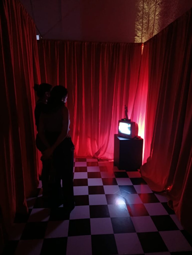Jefferson Chávez, por su parte, transforma la sala en una experiencia inmersiva con su instalación audiovisual “Cuerpos Pixelados Almas Fragmentadas”.